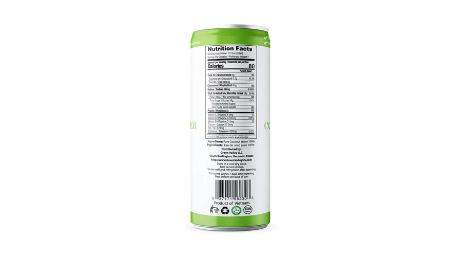 A Green Valley kókuszvíz 100%-ban a friss fiatal kókuszból készült. A termék a természetes cukortartalma miatt édesebb és ízletesebb mint a más, kókuszolaj- és kókusztej-gyártás melléktermékéből készült kókuszvizek. | |